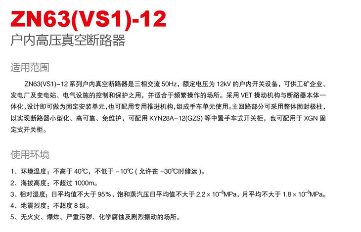 ZN63(VS1)-12戶內(nèi)高壓真空斷路器